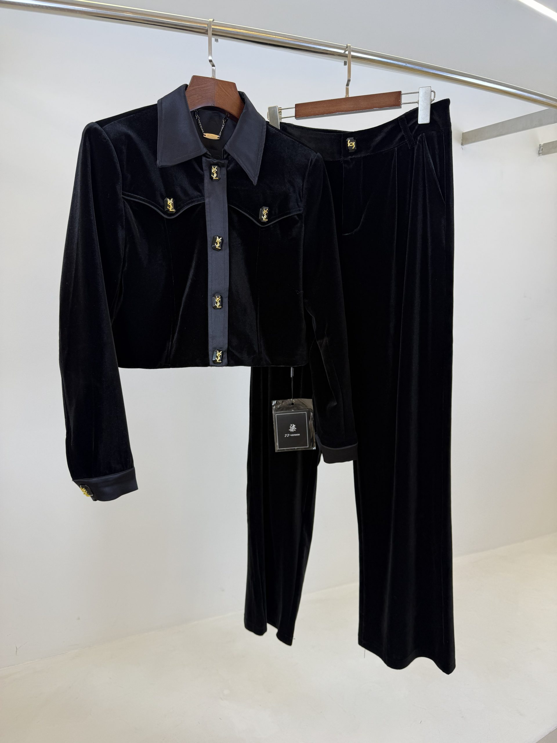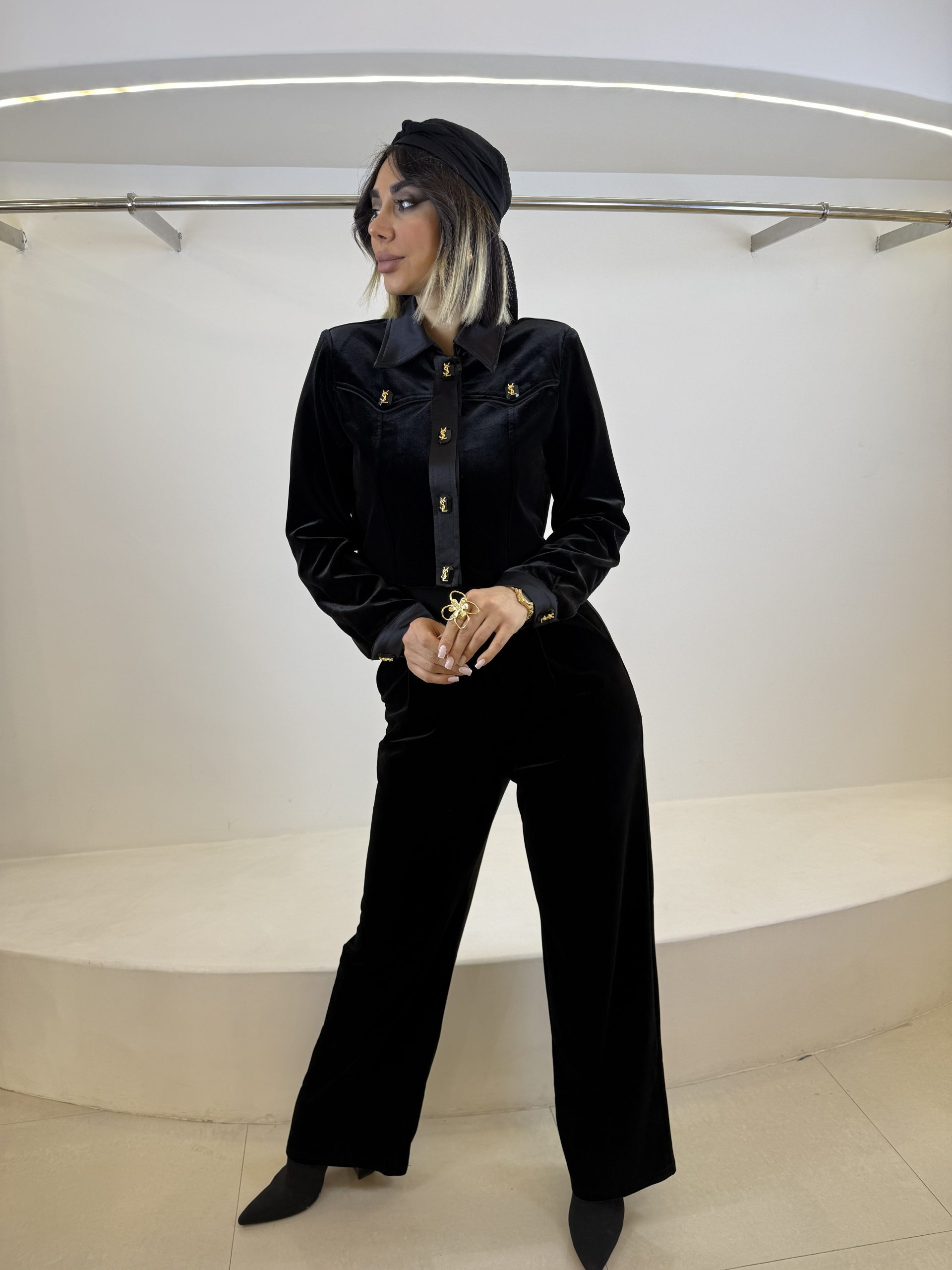 ترکیب یقه ساتن ابریشم با بدنه مخمل جیر، تضادی مات و براق ایجاد کرده که چشم را خسته نمیکند و جلوهای لوکس و خاص به استایل شما میدهد.