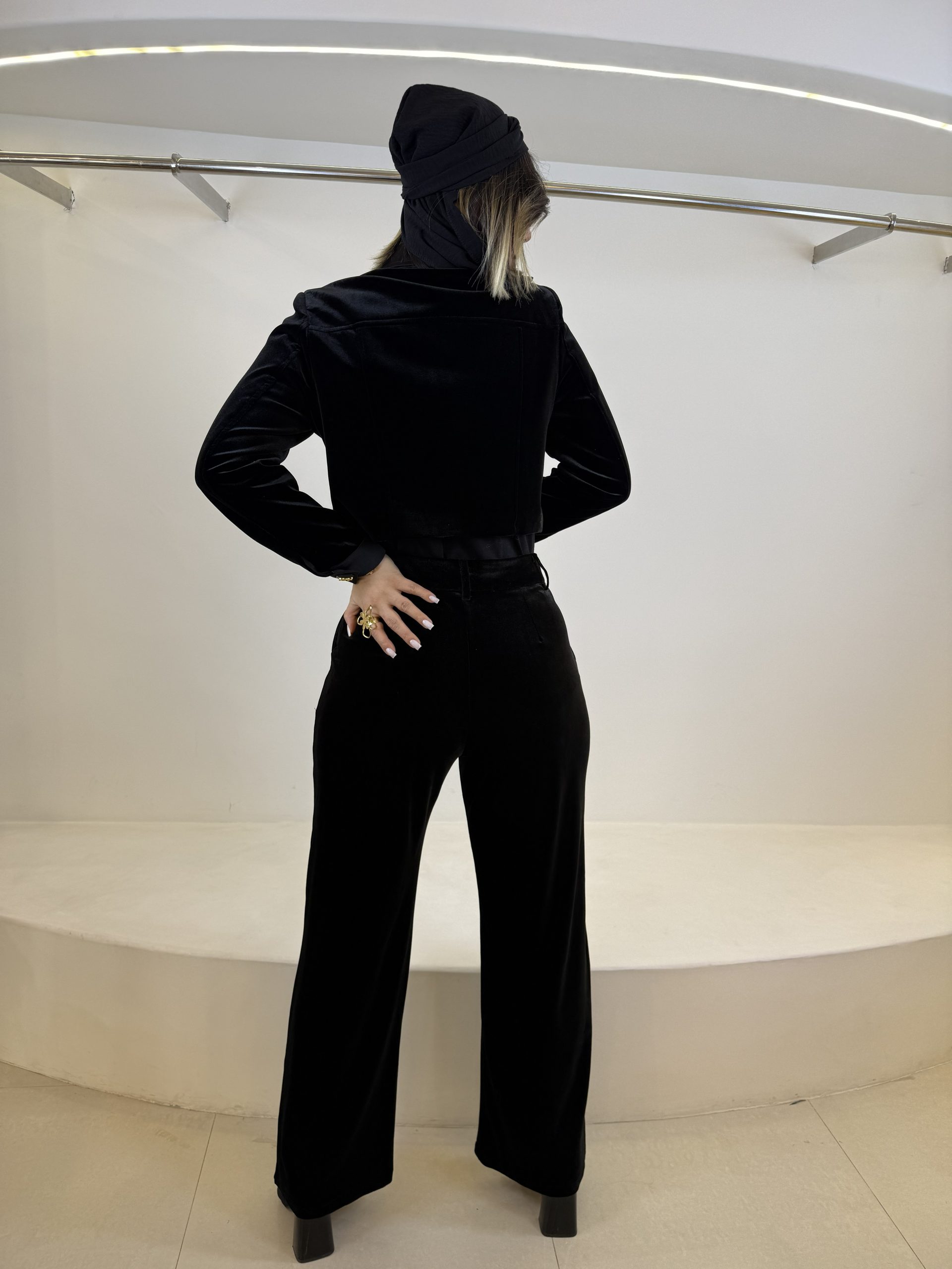 کت کراپ (کوتاه) این ست در کنار شلوار بگِ لَخت، باعث میشود قد شما کشیدهتر و اندامتان متناسبتر دیده شود.